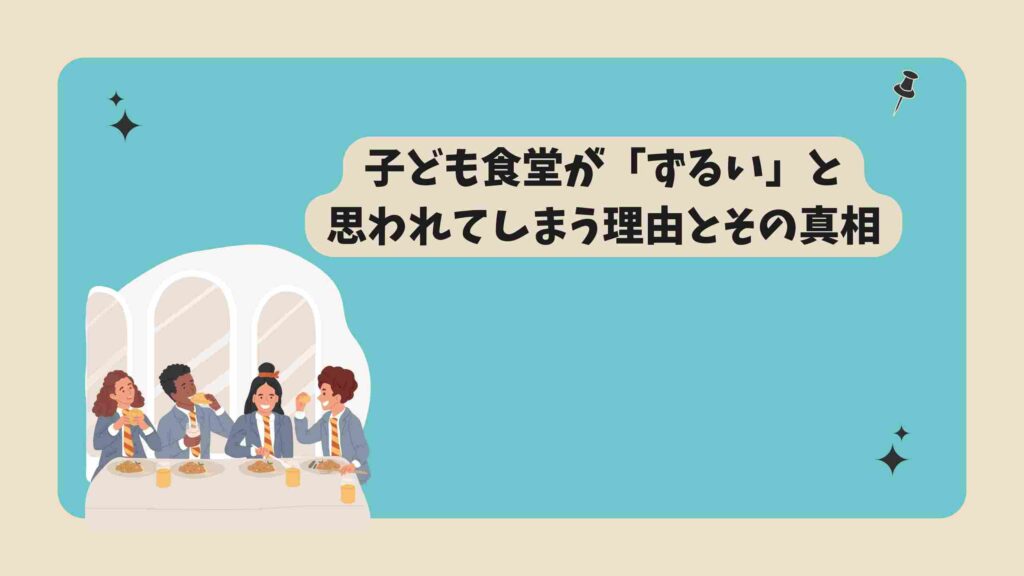 子ども食堂が「ずるい」と言われる理由とその真相を探ります。子ども食堂の意義や課題、そして社会への影響を詳しく解説します。 -